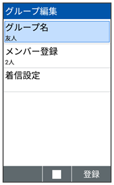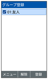 電話帳に、名前、電話番号、メールアドレス(いずれかの入力は必須)、グループを登録する方法を例に説明します。