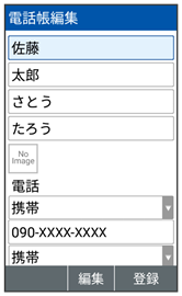 - 電話帳編集画面で電話/メール/住所/ウェブサイト欄の携帯/自宅