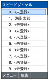 • スピードダイヤル一覧画面で登録済みの番号を選択