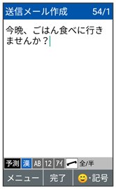 • 電話帳引用メール受信履歴引用メール送信履歴引用メールグループ引用プロフィール引用直接入力