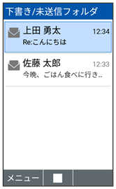 送信失敗したメールや下書きとして保存したメールの確認、編集をします。