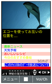 - ワンセグ視聴画面(横画面)のときはデータ放送はご利用いただけません。