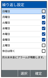 - 休日は除くを指定すると、カレンダーで休日設定されている日にアラームが鳴らないように設定できます。