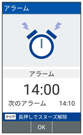 ほかのアプリの動作中にアラーム設定時刻になると、待受画面に戻るまで、アラームが動作しないことがあります。
