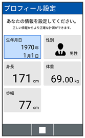 - 表示される数値は、あらかじめ登録されている仮の値で計算されています。自分の情報を登録すれば、より正確な数値が表示できます。