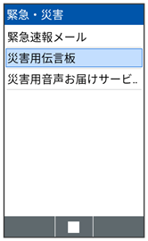災害用伝言板メニューが表示されます。
