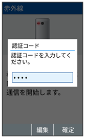 認証コードは、正しい通信相手かどうかをお互いに確認するための暗証番号です。送信側/受信側で同じ数字(4桁)を入力します(特に決まった数字はなく、その通信限りのものです)。