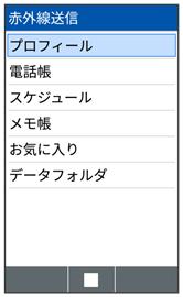 赤外線を利用して、携帯電話などほかの機器とデータ(プロフィール、電話帳、メモ帳、フォト、ムービー、音楽など)をやりとりできます。