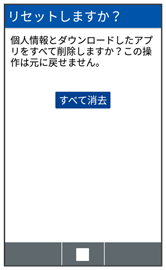 すべてのデータを消去(初期状態にリセット)すると、本体メモリのデータがすべて消去されます。必要なデータは事前にバックアップをとることをおすすめします。