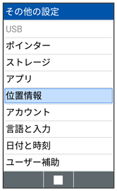 | 位置情報 | 位置情報の利用を設定できます。 | |