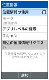 | 最近の位置情報リクエスト | 位置情報をリクエストしたアプリが一覧で表示されます。 |