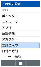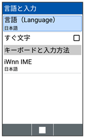 | 言語と入力 | 表示言語や文字入力などについて設定できます。 | |