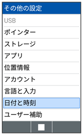 - 日付と時刻画面で時刻設定