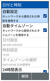 | 自動タイムゾーン | ネットワークから提供されたタイムゾーンを利用するかどうかを設定します。 | |