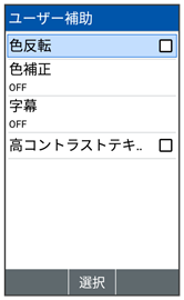 | 色反転 | ディスプレイの色を反転します。 | |