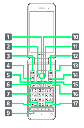 | 「♯」を入力、すぐ文字を起動1、Bluetooth®のON/OFF(長押し) |