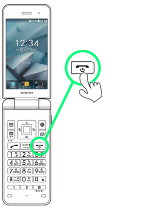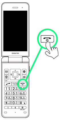 • ↓画面に「KYOCERA」と表示されるまで、power(長押し)