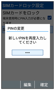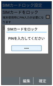 USIMカードロック設定画面が表示されます。