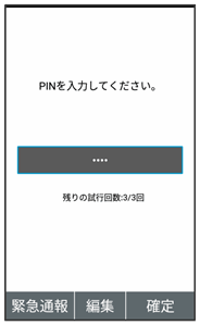 PINコードを操作するときや、USIMカードロック設定時に電源を入れたときは、PINコードの入力が必要になります。