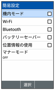 Wi-Fi機能やBluetooth®通信を有効にしているときに機内モードに設定すると、その時点でそれぞれの通信が無効になります。データ通信中に操作すると切断されますので、ご注意ください。