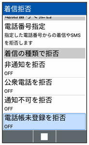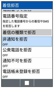 非通知での着信、公衆電話や通知不可電話からの着信を拒否することができます。