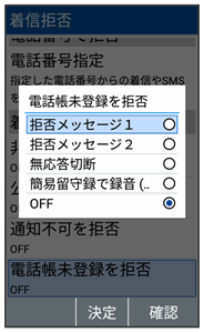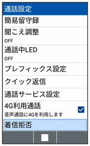 あらかじめ指定した電話番号からの着信、電話帳に登録されていない相手や電話番号非通知の着信などを拒否することができます。