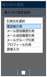 • ↓電話帳引用メール受信履歴引用メール送信履歴引用メールグループ引用プロフィール引用直接入力