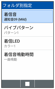 • ↓フォルダ別指定画面で着信音鳴動時間