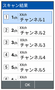 チャンネルのスキャンが始まり、終了するとチャンネルリスト確認画面が表示されます。