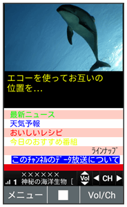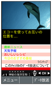 ワンセグ視聴画面(縦画面)では画面下部にデータ放送が表示され、番組の情報を入手できます。