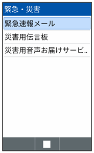 緊急速報メール受信メッセージ一覧画面が表示されます。