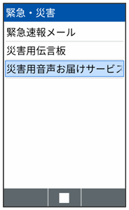 災害用音声お届けサービス画面が表示されます。