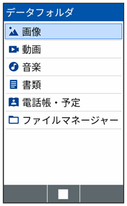 データフォルダでは、次の種類別にフォルダが表示されます。