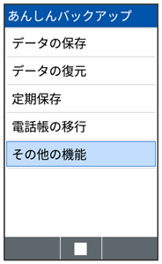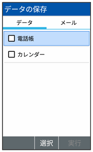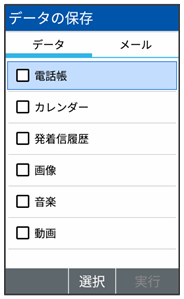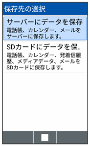 本体の電話帳データ/カレンダーデータ/発着信履歴データ/画像データ/音楽データ/動画データを、サーバー/SDカードなどに保存します。