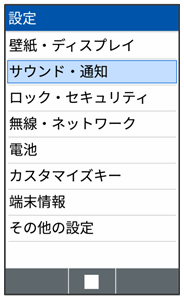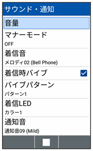マナーモードの設定や着信音、操作音などに関する設定ができます。設定できる項目は次のとおりです。