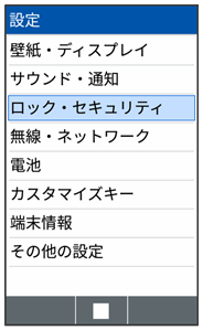 | 画面ロック | 画面ロック解除方法を設定します。 詳しくは、「本機の使用を禁止する(画面ロック)」を参照してください。 |