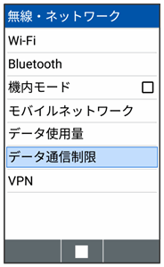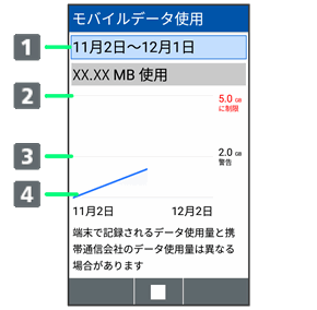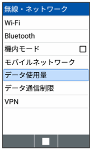 モバイルデータ通信の使用量(1ヶ月単位)を確認したり、使用を制限したりすることができます。