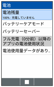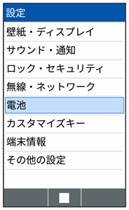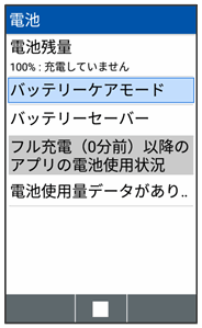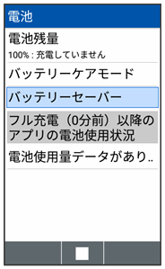 バッテリーセーバーの設定や電池の使用状況を確認できます。