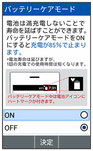 電池寿命を延ばすために満充電しないように設定することができます。ONにすると充電が85%で止まります。
