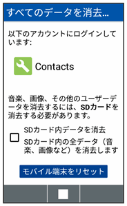 すべてのデータを消去(初期状態にリセット)すると、本体メモリのデータがすべて消去されます。必要なデータは事前にバックアップをとることをおすすめします。