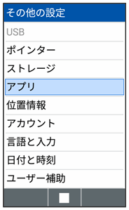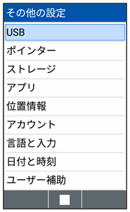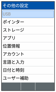 | ストレージ | 本体メモリ/SDカードの容量の確認や、SDカードのマウント、SDカード内のデータを消去できます。 | |