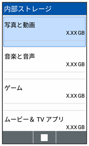 | 合計容量 | 本体メモリやSDカードの合計容量を確認します。 | |