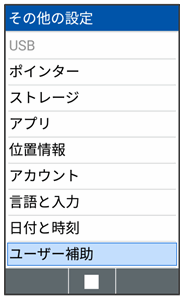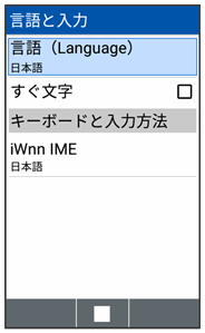 | 言語と入力 | 表示言語や文字入力などについて設定できます。 | |