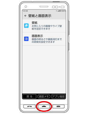 (ホームキー)を押すと直接ホーム画面に戻ることができます。