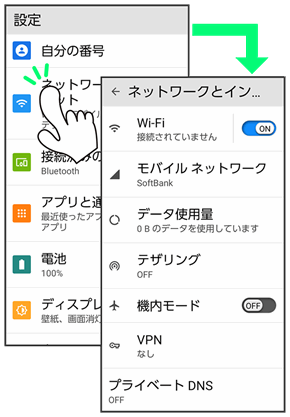 また、画面をロングタッチすると利用できる設定や項目が表示される画面もあります。