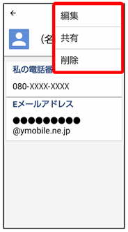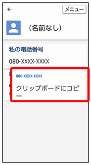 メニューをタップすると、その画面で利用できる機能の設定や項目が画面に表示されます。