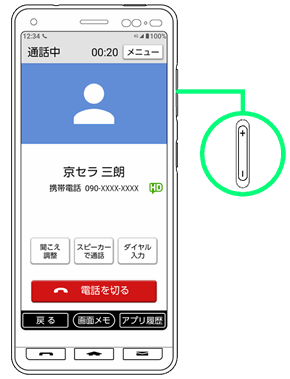 ここでは通話中に通話音量を調節する方法を説明します。