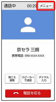 メニューを表示して、保留やミュートなどの操作をします。