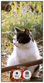 • 動画撮影中にkantan-sumaho-2_icon_172をタップすると写真を撮ることができます。その際の写真は、メニュー→サイズで設定した大きさで保存されます。詳しくは、「カメラのはたらきを設定する」を参照してください。