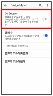 すでに音声操作を設定したことがある場合は、音声アシスト機能がONに設定されます。